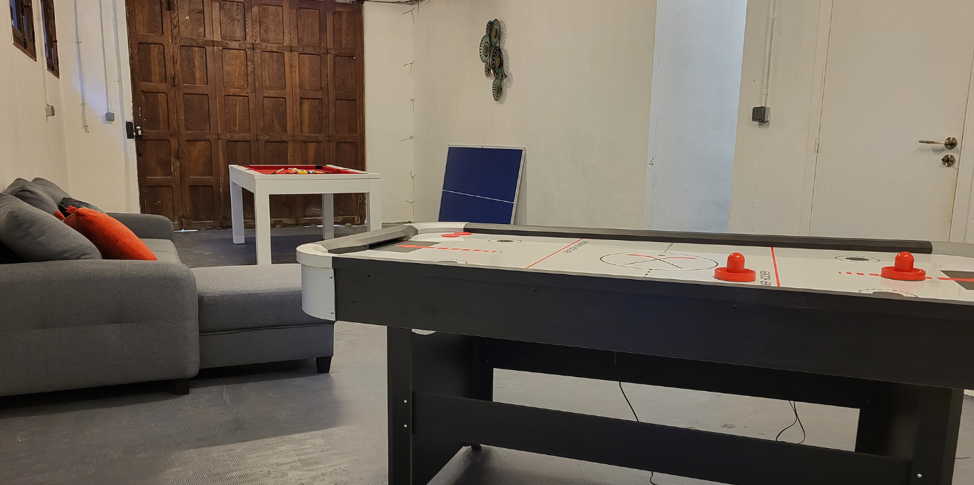 Nous avons aussi en intérieur des jeux pour vous amuser : un BILLARD, un BABY-FOOT et un AIR HOCKEY.