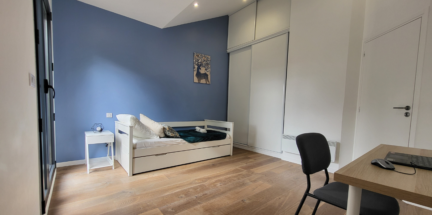 Reposez-vous dans nos 5 chambres possédant un mobilier et une décoration moderne et personnalisée, de quoi permettre à chacun de choisir sa CHAMBRE préférée. La literie a été soigneusement équipée de MATELAS DE QUALITÉ pour vous permettre des nuits reposantes.